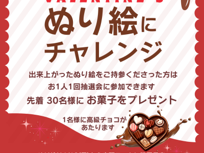 バレンタイン『ぬり絵にチャレンジ』開催